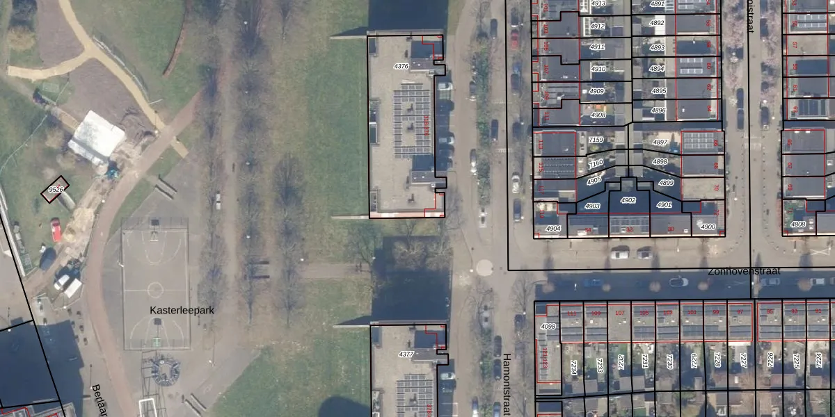 Hamontstraat 374 is gelegen op kadastraal perceel STN02E4376. Deze kadastrale aanduiding is uniek en wordt gebruikt door het Kadaster om eigendomsrechten en andere zakelijke rechten vast te leggen. Het perceel maakt onderdeel uit van de kadastrale gemeente Sloten Noord-Holland.