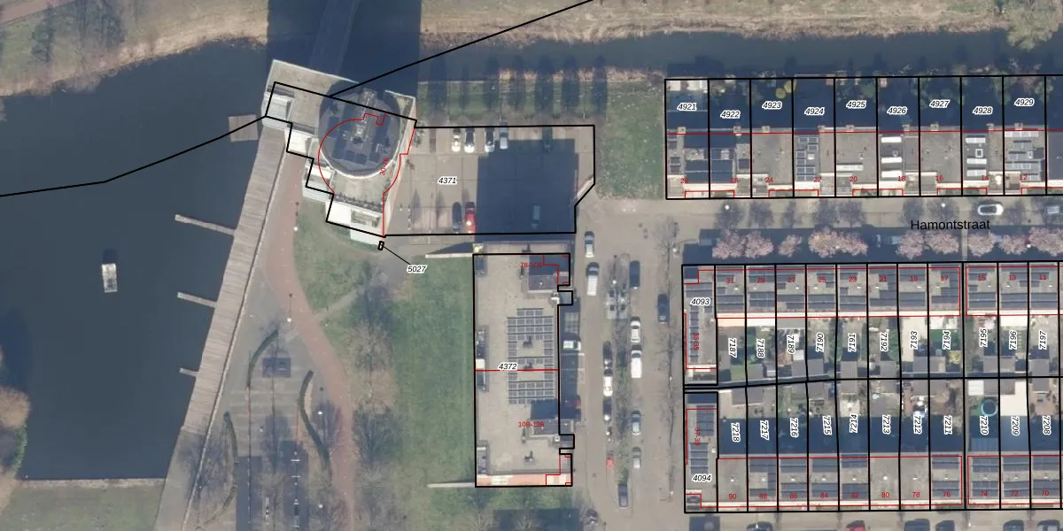 Hamontstraat 78 is gelegen op kadastraal perceel STN02E4372. Deze kadastrale aanduiding is uniek en wordt gebruikt door het Kadaster om eigendomsrechten en andere zakelijke rechten vast te leggen. Het perceel maakt onderdeel uit van de kadastrale gemeente Sloten Noord-Holland.