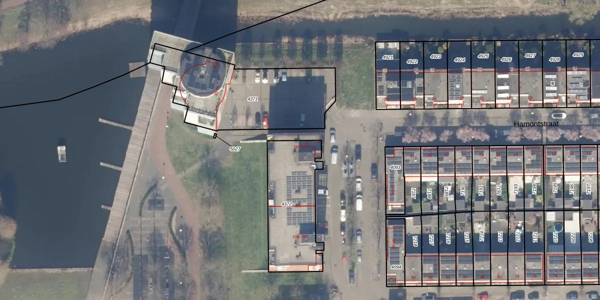 Hamontstraat 84 is gelegen op kadastraal perceel STN02E4372. Deze kadastrale aanduiding is uniek en wordt gebruikt door het Kadaster om eigendomsrechten en andere zakelijke rechten vast te leggen. Het perceel maakt onderdeel uit van de kadastrale gemeente Sloten Noord-Holland.