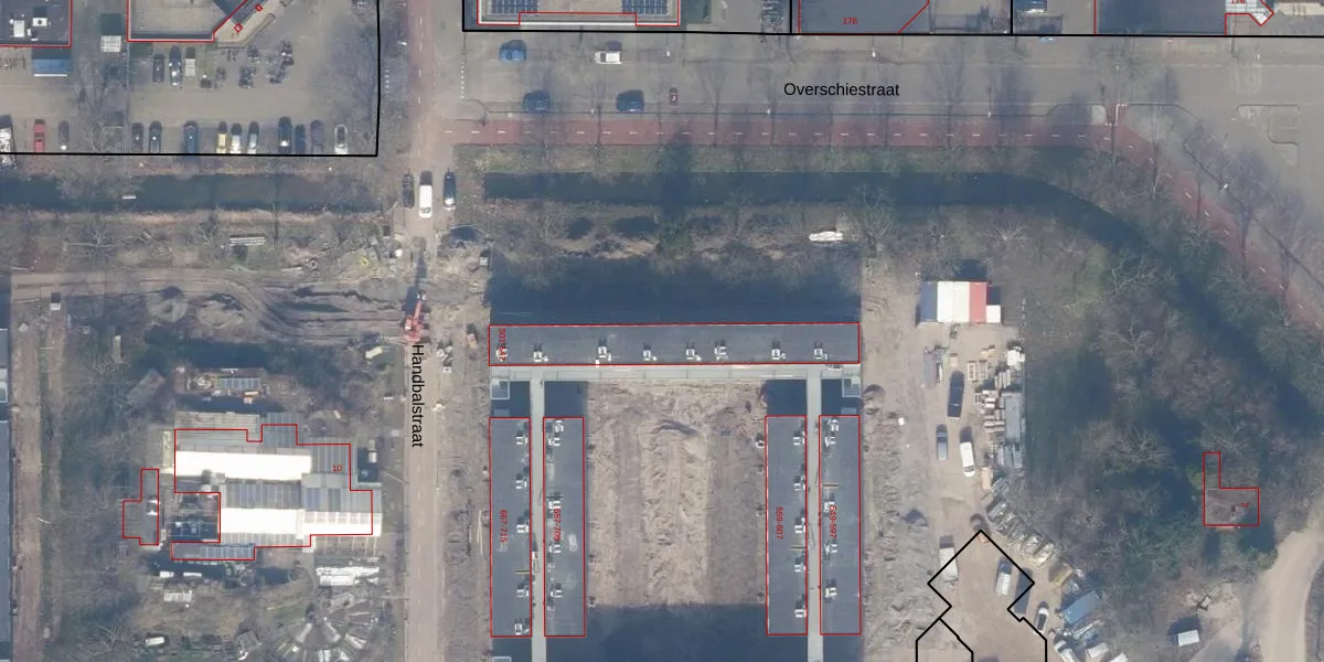 Het perceel waarop Handbalstraat 513 staat heeft een oppervlakte van 15,4 ha. Dit is een zeer groot perceel. De perceeloppervlakte wordt geregistreerd door het Kadaster. Gedetailleerde informatie over de maten van dit perceel kunt u vinden in het rapport Kadastrale kaart met maatvoering van Handbalstraat 513.