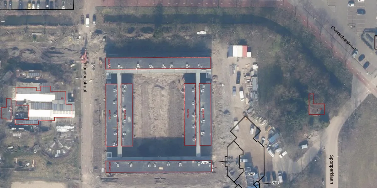 Het perceel waarop Handbalstraat 585 staat heeft een oppervlakte van 15,4 ha. Dit is een zeer groot perceel. De perceeloppervlakte wordt geregistreerd door het Kadaster. Gedetailleerde informatie over de maten van dit perceel kunt u vinden in het rapport Kadastrale kaart met maatvoering van Handbalstraat 585.