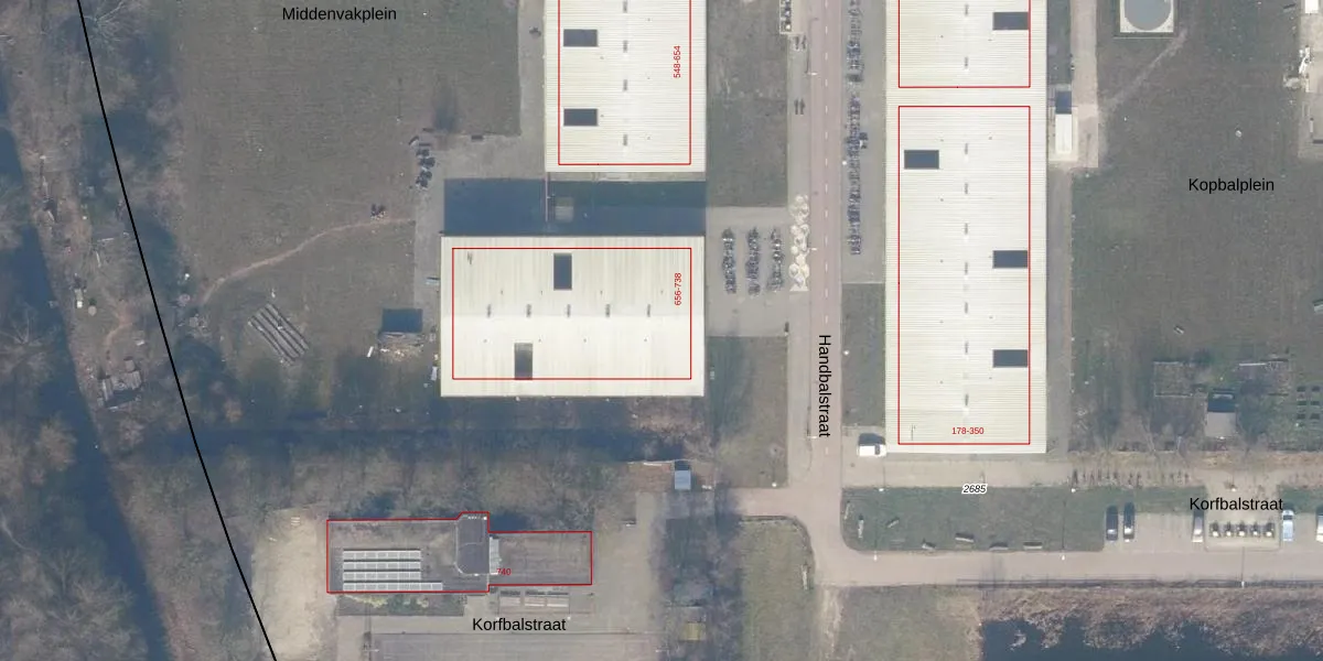 Het perceel waarop Handbalstraat 702 staat heeft een oppervlakte van 15,4 ha. Dit is een zeer groot perceel. De perceeloppervlakte wordt geregistreerd door het Kadaster. Gedetailleerde informatie over de maten van dit perceel kunt u vinden in het rapport Kadastrale kaart met maatvoering van Handbalstraat 702.