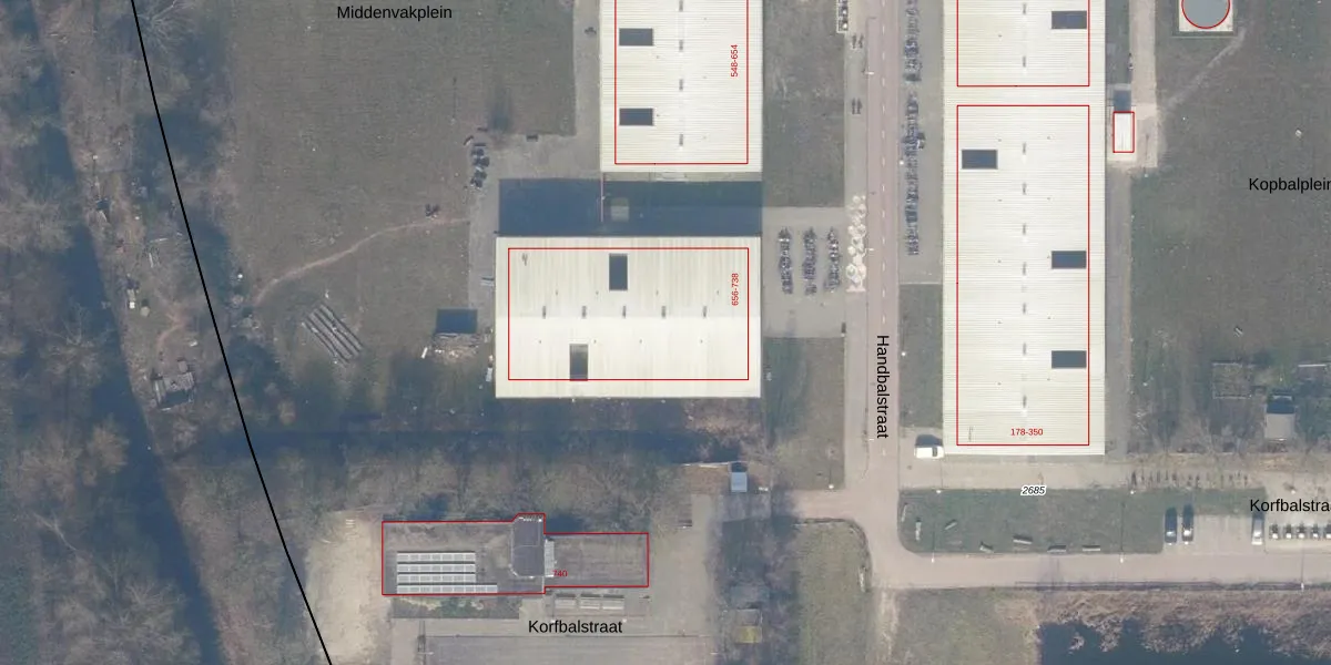Het perceel waarop Handbalstraat 716 staat heeft een oppervlakte van 15,4 ha. Dit is een zeer groot perceel. De perceeloppervlakte wordt geregistreerd door het Kadaster. Gedetailleerde informatie over de maten van dit perceel kunt u vinden in het rapport Kadastrale kaart met maatvoering van Handbalstraat 716.