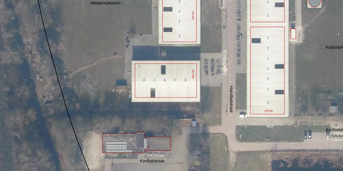 Het perceel waarop Handbalstraat 720 staat heeft een oppervlakte van 15,4 ha. Dit is een zeer groot perceel. De perceeloppervlakte wordt geregistreerd door het Kadaster. Gedetailleerde informatie over de maten van dit perceel kunt u vinden in het rapport Kadastrale kaart met maatvoering van Handbalstraat 720.