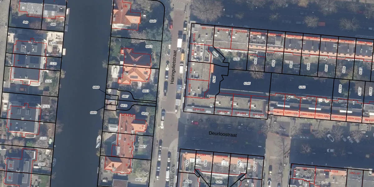 Het adres ligt op het perceel ASD18-V-6244, dat zich in de kadastrale gemeente Amsterdam bevindt. De gemiddelde perceelgrootte in Amsterdam is 558,8 m². Dit perceel is kleiner: de perceeloppervlakte bedraagt 486 m². Het grootste perceel in de kadastrale gemeente is 12,5 ha. Het kleinste perceel heeft een oppervlakte van 0 m². Op het perceel liggen in totaal 12 adressen. In de Basisregistratie Kadaster (BRK) werden de grenzen van het perceel geregistreerd op 17-10-2006.