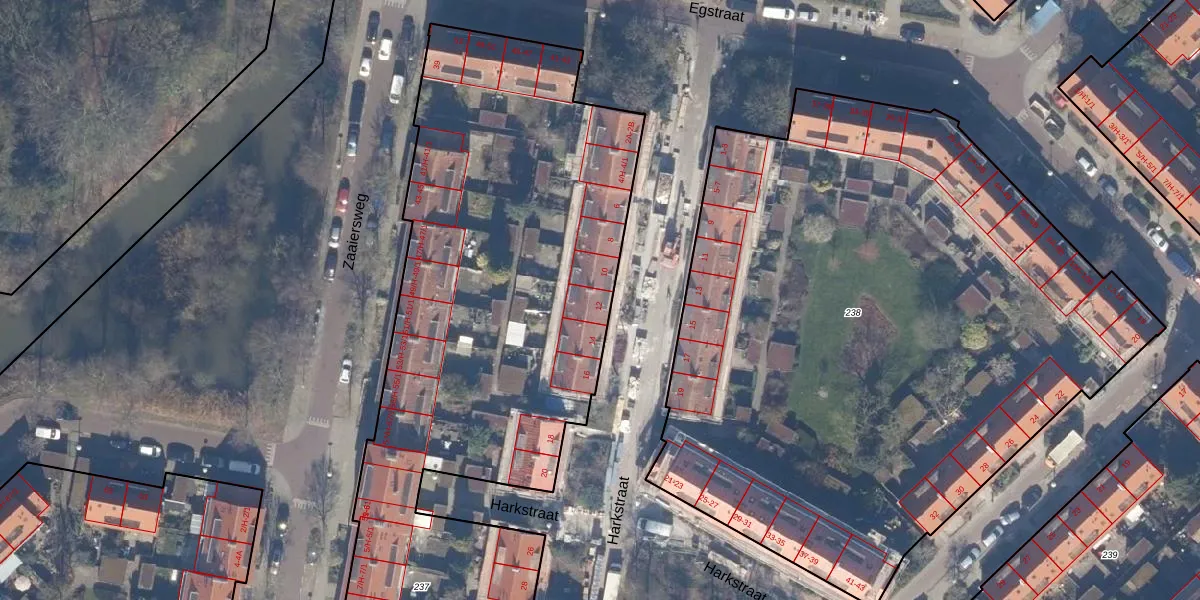 Het perceel waarop Harkstraat 12 staat heeft een oppervlakte van 5775 m². Dit is een zeer groot perceel. De perceeloppervlakte wordt geregistreerd door het Kadaster. Gedetailleerde informatie over de maten van dit perceel kunt u vinden in het rapport Kadastrale kaart met maatvoering van Harkstraat 12.