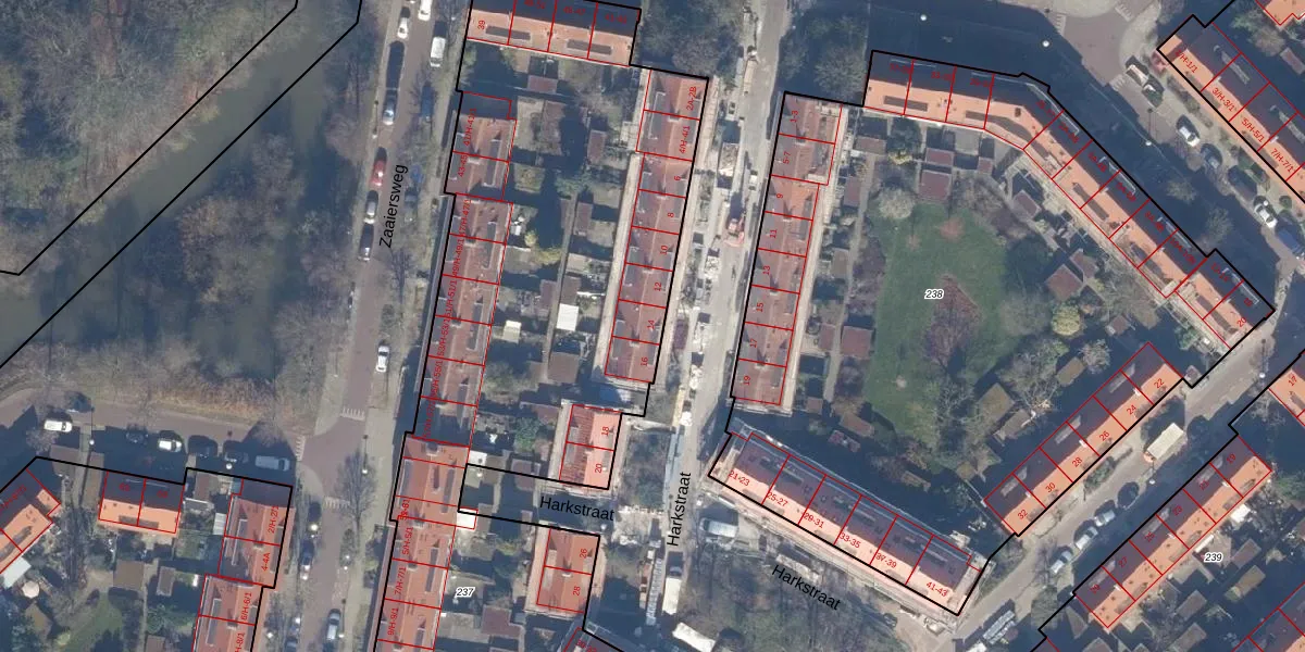 Het perceel waarop Harkstraat 14 staat heeft een oppervlakte van 5775 m². Dit is een zeer groot perceel. De perceeloppervlakte wordt geregistreerd door het Kadaster. Gedetailleerde informatie over de maten van dit perceel kunt u vinden in het rapport Kadastrale kaart met maatvoering van Harkstraat 14.