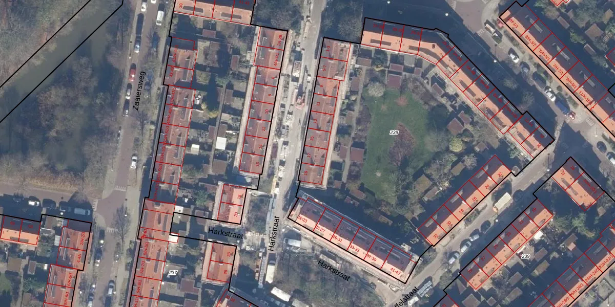 Harkstraat 17 is gelegen op kadastraal perceel WTG02C238. Deze kadastrale aanduiding is uniek en wordt gebruikt door het Kadaster om eigendomsrechten en andere zakelijke rechten vast te leggen. Het perceel maakt onderdeel uit van de kadastrale gemeente Watergraafsmeer.