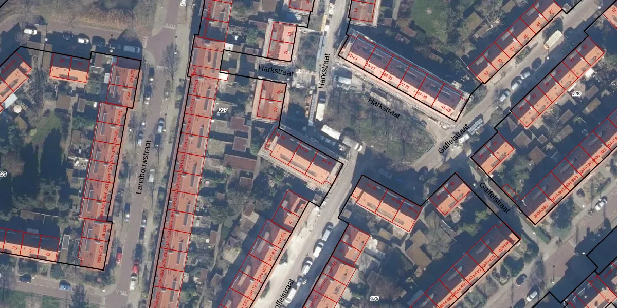 Het perceel waarop Harkstraat 36 staat heeft een oppervlakte van 5775 m². Dit is een zeer groot perceel. De perceeloppervlakte wordt geregistreerd door het Kadaster. Gedetailleerde informatie over de maten van dit perceel kunt u vinden in het rapport Kadastrale kaart met maatvoering van Harkstraat 36.