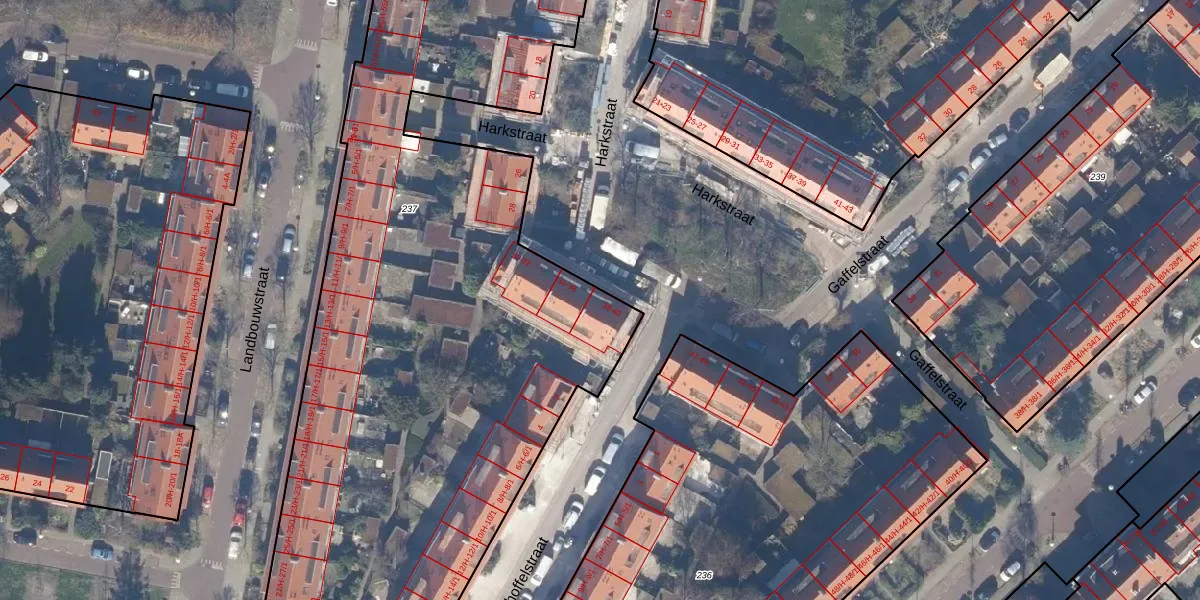 Harkstraat 38 is gelegen op kadastraal perceel WTG02C237. Deze kadastrale aanduiding is uniek en wordt gebruikt door het Kadaster om eigendomsrechten en andere zakelijke rechten vast te leggen. Het perceel maakt onderdeel uit van de kadastrale gemeente Watergraafsmeer.