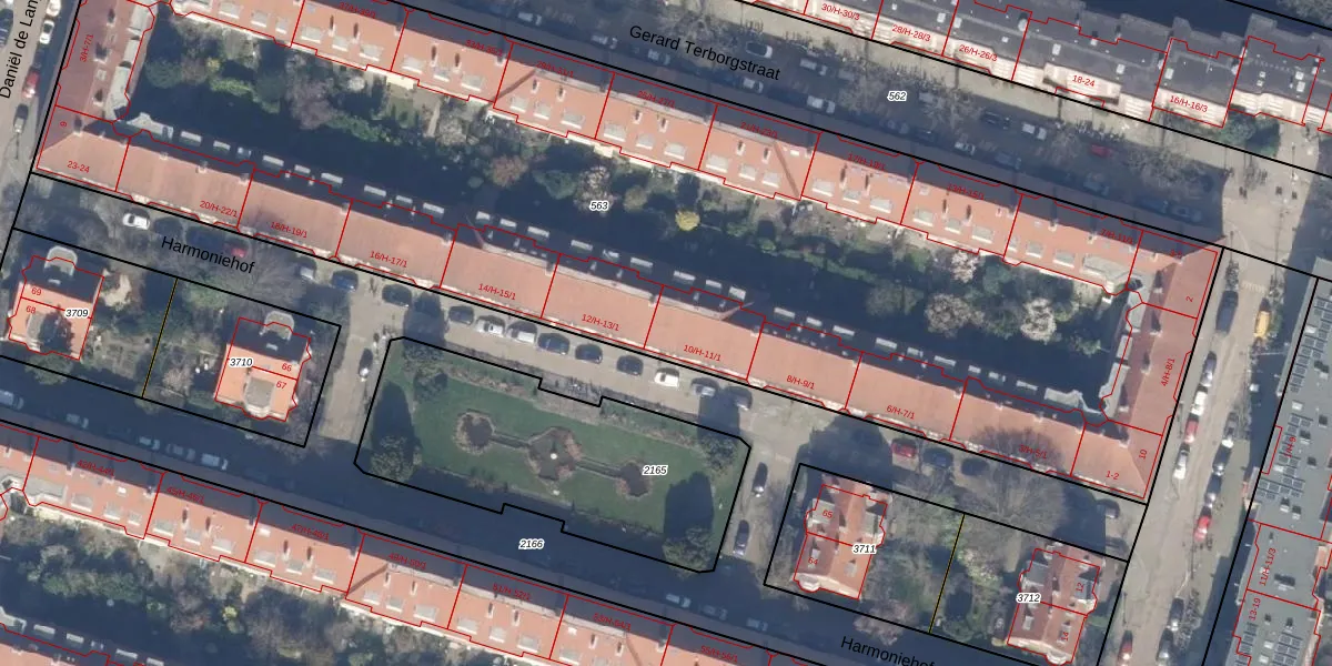 Harmoniehof 11-H is gelegen op kadastraal perceel ASD22Z563. Deze kadastrale aanduiding is uniek en wordt gebruikt door het Kadaster om eigendomsrechten en andere zakelijke rechten vast te leggen. Het perceel maakt onderdeel uit van de kadastrale gemeente Amsterdam.