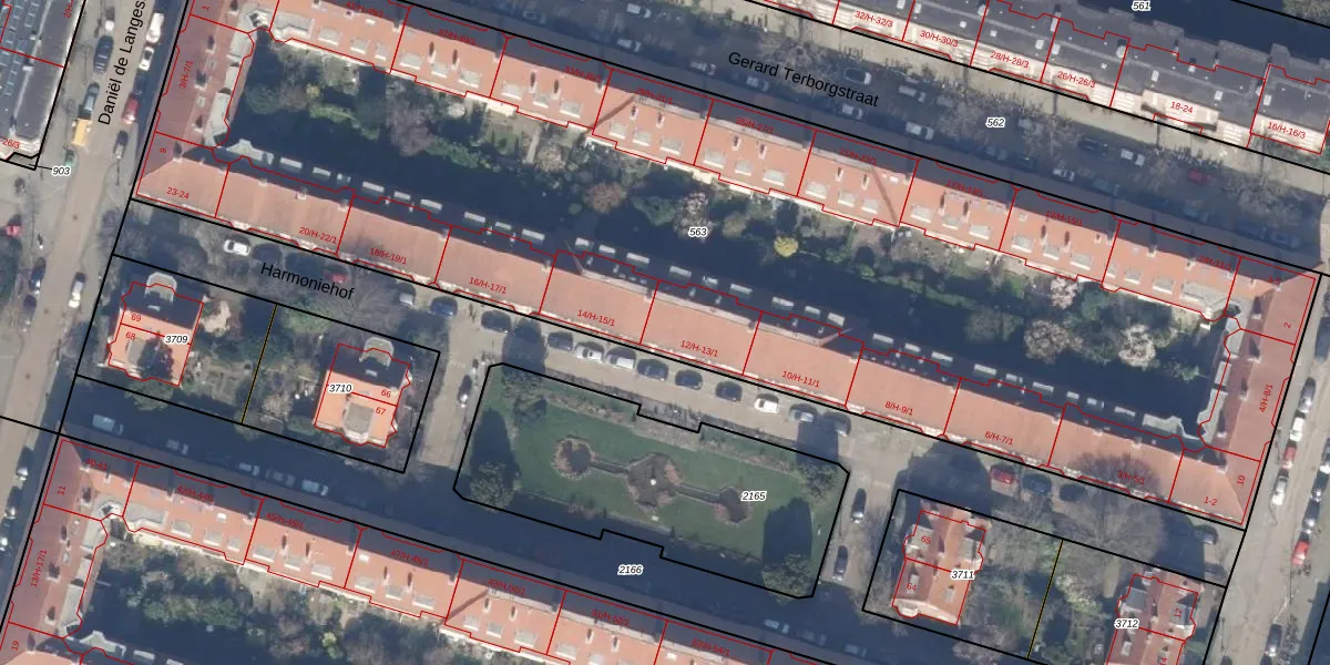 Het perceel waarop Harmoniehof 13-1 staat heeft een oppervlakte van 6998 m². Dit is een zeer groot perceel. De perceeloppervlakte wordt geregistreerd door het Kadaster. Gedetailleerde informatie over de maten van dit perceel kunt u vinden in het rapport Kadastrale kaart met maatvoering van Harmoniehof 13-1.
