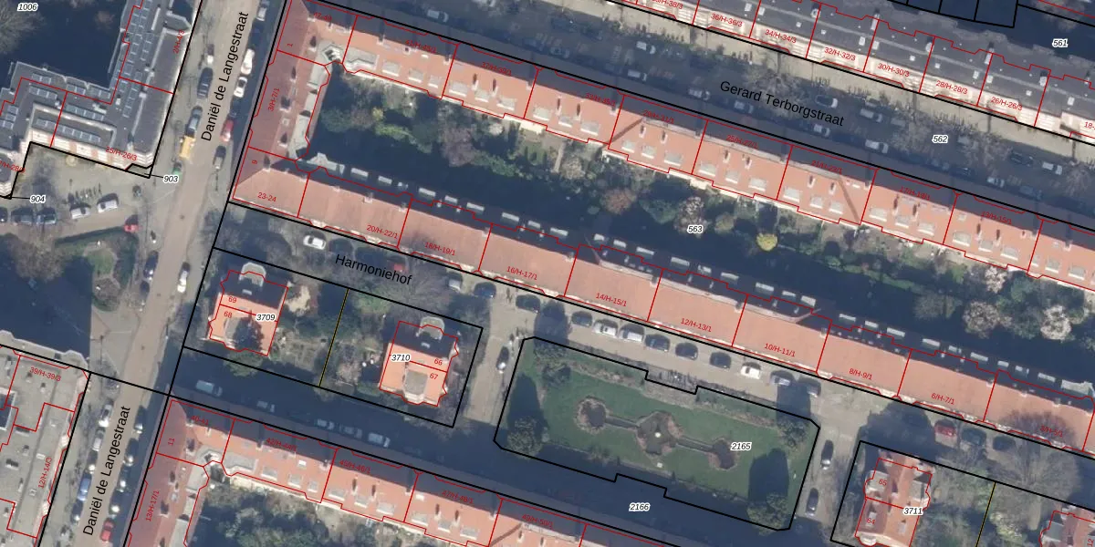 Harmoniehof 16-H is gelegen op kadastraal perceel ASD22Z563. Deze kadastrale aanduiding is uniek en wordt gebruikt door het Kadaster om eigendomsrechten en andere zakelijke rechten vast te leggen. Het perceel maakt onderdeel uit van de kadastrale gemeente Amsterdam.