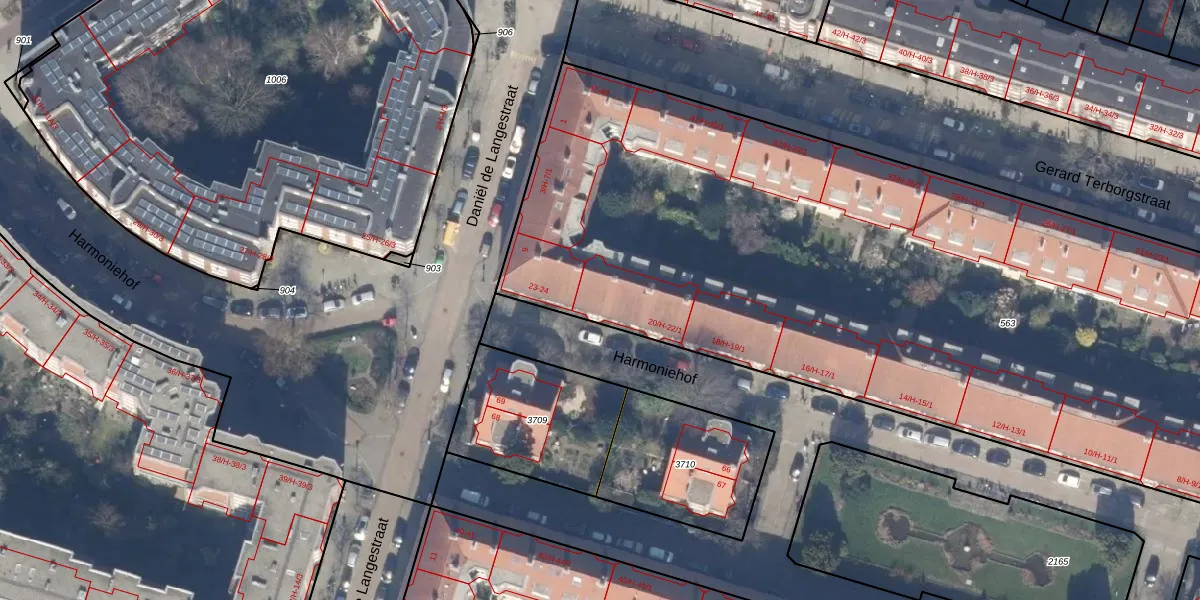 Harmoniehof 22-H is gelegen op kadastraal perceel ASD22Z563. Deze kadastrale aanduiding is uniek en wordt gebruikt door het Kadaster om eigendomsrechten en andere zakelijke rechten vast te leggen. Het perceel maakt onderdeel uit van de kadastrale gemeente Amsterdam.