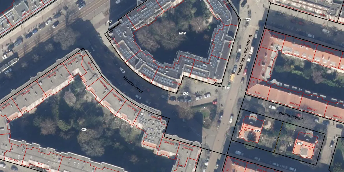 Harmoniehof 28-2 is gelegen op kadastraal perceel ASD22Z1006. Deze kadastrale aanduiding is uniek en wordt gebruikt door het Kadaster om eigendomsrechten en andere zakelijke rechten vast te leggen. Het perceel maakt onderdeel uit van de kadastrale gemeente Amsterdam.