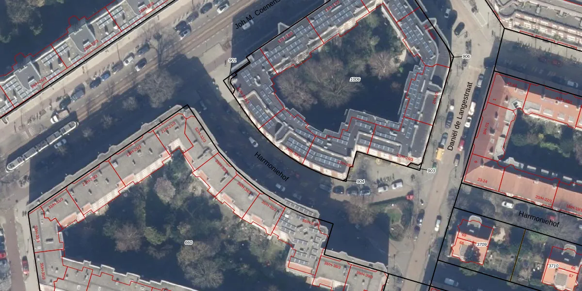 Harmoniehof 29-1 is gelegen op kadastraal perceel ASD22Z1006. Deze kadastrale aanduiding is uniek en wordt gebruikt door het Kadaster om eigendomsrechten en andere zakelijke rechten vast te leggen. Het perceel maakt onderdeel uit van de kadastrale gemeente Amsterdam.