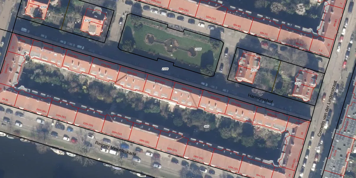 Harmoniehof 53-H is gelegen op kadastraal perceel ASD22Z565. Deze kadastrale aanduiding is uniek en wordt gebruikt door het Kadaster om eigendomsrechten en andere zakelijke rechten vast te leggen. Het perceel maakt onderdeel uit van de kadastrale gemeente Amsterdam.