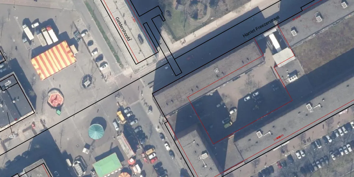 Het perceel waarop Harriet Freezerstraat 40 staat heeft een oppervlakte van 1,1 ha. Dit is een zeer groot perceel. De perceeloppervlakte wordt geregistreerd door het Kadaster. Gedetailleerde informatie over de maten van dit perceel kunt u vinden in het rapport Kadastrale kaart met maatvoering van Harriet Freezerstraat 40.