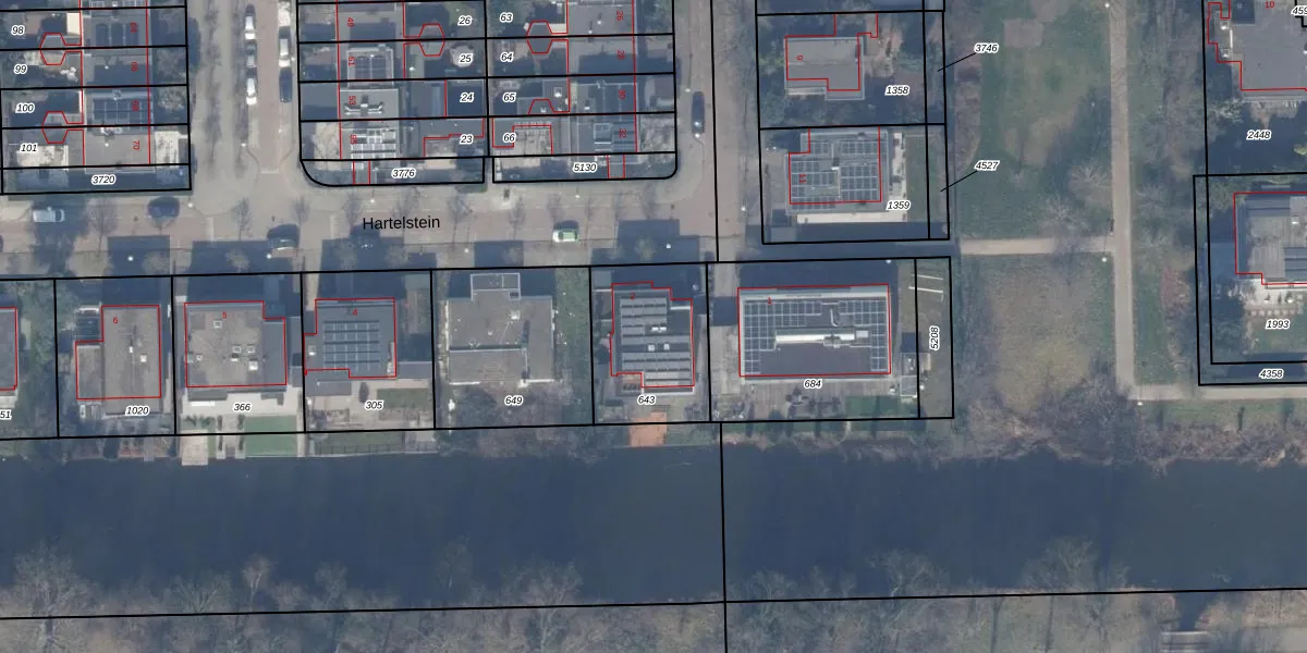 Het perceel waarop Hartelstein 2 staat heeft een oppervlakte van 436 m². Dit is een groot perceel. De perceeloppervlakte wordt geregistreerd door het Kadaster. Gedetailleerde informatie over de maten van dit perceel kunt u vinden in het rapport Kadastrale kaart met maatvoering van Hartelstein 2.
