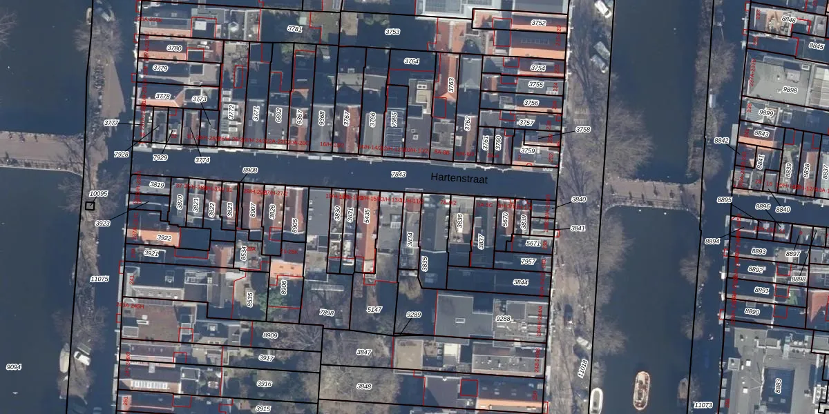 Hartenstraat 11-1 is gelegen op kadastraal perceel ASD03E3834. Deze kadastrale aanduiding is uniek en wordt gebruikt door het Kadaster om eigendomsrechten en andere zakelijke rechten vast te leggen. Het perceel maakt onderdeel uit van de kadastrale gemeente Amsterdam.