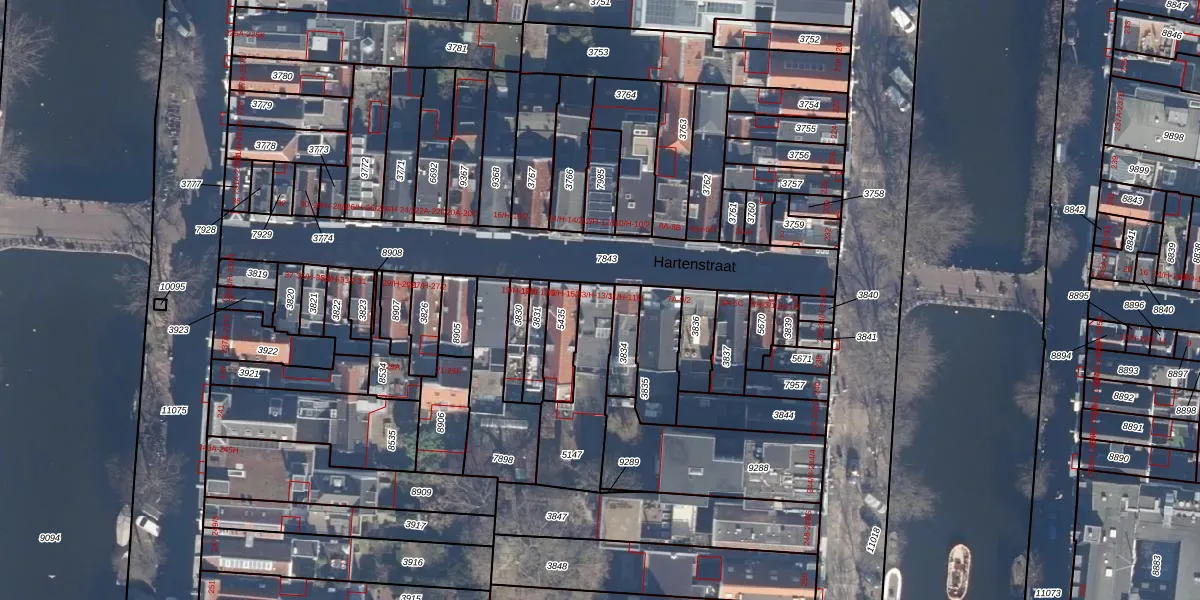 Hartenstraat 13-1 is gelegen op kadastraal perceel ASD03E5147. Deze kadastrale aanduiding is uniek en wordt gebruikt door het Kadaster om eigendomsrechten en andere zakelijke rechten vast te leggen. Het perceel maakt onderdeel uit van de kadastrale gemeente Amsterdam.