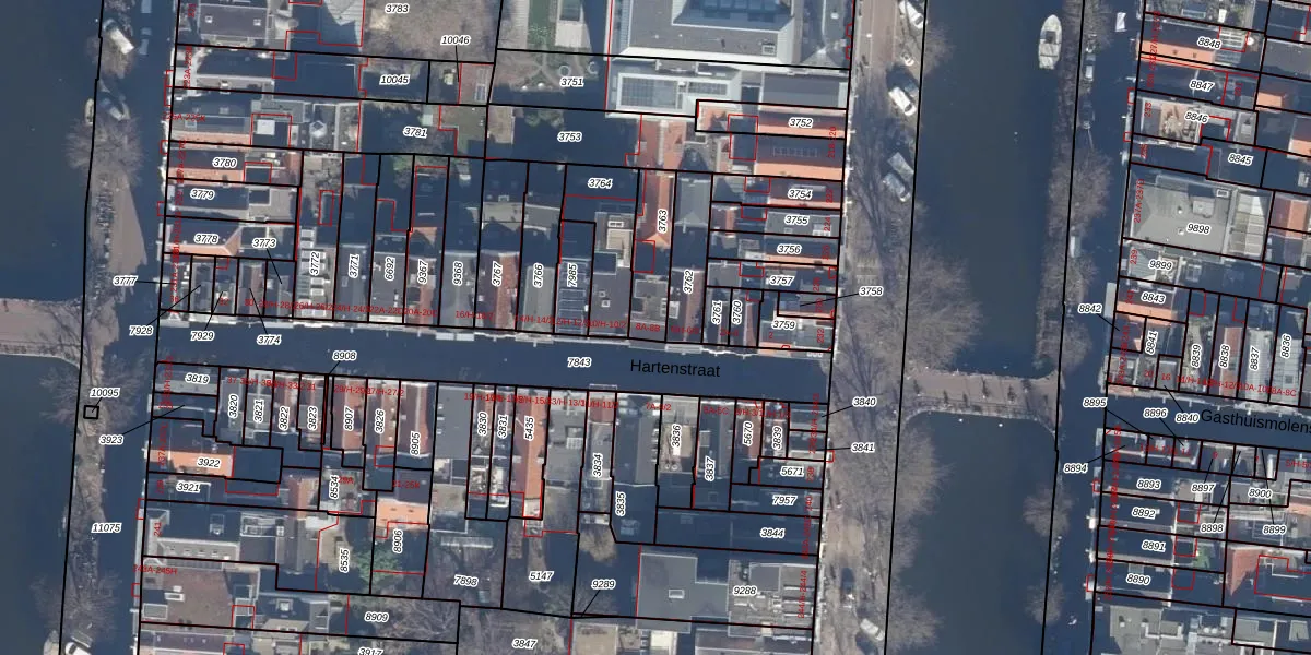 Hartenstraat 8-B is gelegen op kadastraal perceel ASD03E3763. Deze kadastrale aanduiding is uniek en wordt gebruikt door het Kadaster om eigendomsrechten en andere zakelijke rechten vast te leggen. Het perceel maakt onderdeel uit van de kadastrale gemeente Amsterdam.