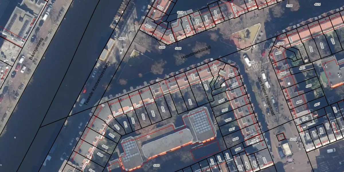 Hasebroekstraat 111-C is gelegen op kadastraal perceel ASD16T5057. Deze kadastrale aanduiding is uniek en wordt gebruikt door het Kadaster om eigendomsrechten en andere zakelijke rechten vast te leggen. Het perceel maakt onderdeel uit van de kadastrale gemeente Amsterdam.