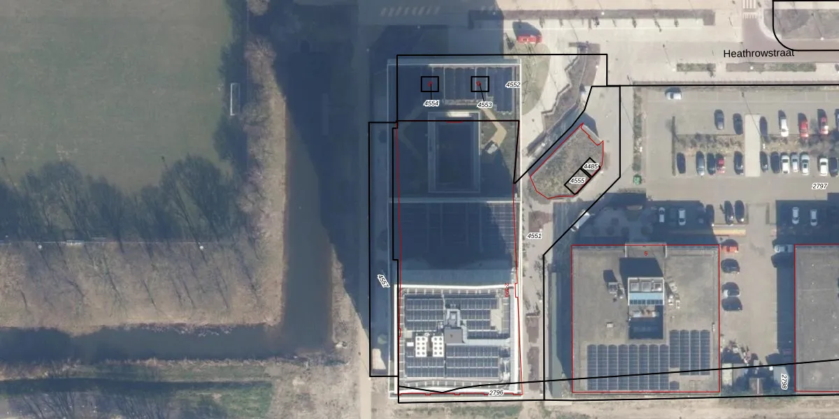 Het perceel waarop Heathrowstraat 220 staat heeft een oppervlakte van 2588 m². Dit is een zeer groot perceel. De perceeloppervlakte wordt geregistreerd door het Kadaster. Gedetailleerde informatie over de maten van dit perceel kunt u vinden in het rapport Kadastrale kaart met maatvoering van Heathrowstraat 220.