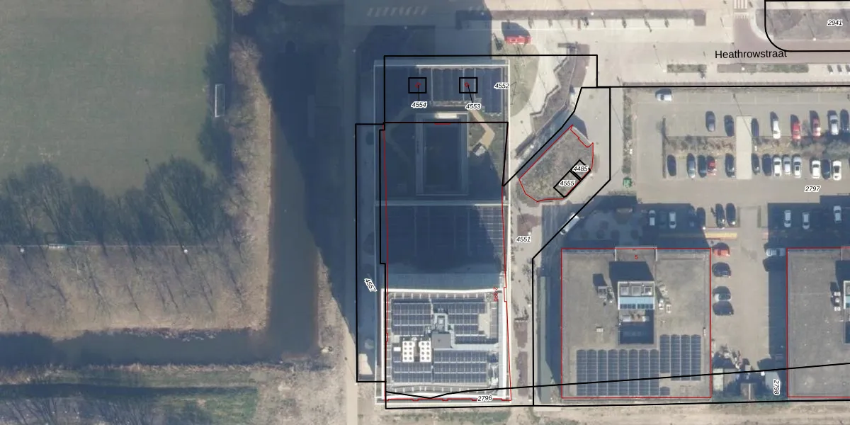 Het perceel waarop Heathrowstraat 222 staat heeft een oppervlakte van 2588 m². Dit is een zeer groot perceel. De perceeloppervlakte wordt geregistreerd door het Kadaster. Gedetailleerde informatie over de maten van dit perceel kunt u vinden in het rapport Kadastrale kaart met maatvoering van Heathrowstraat 222.