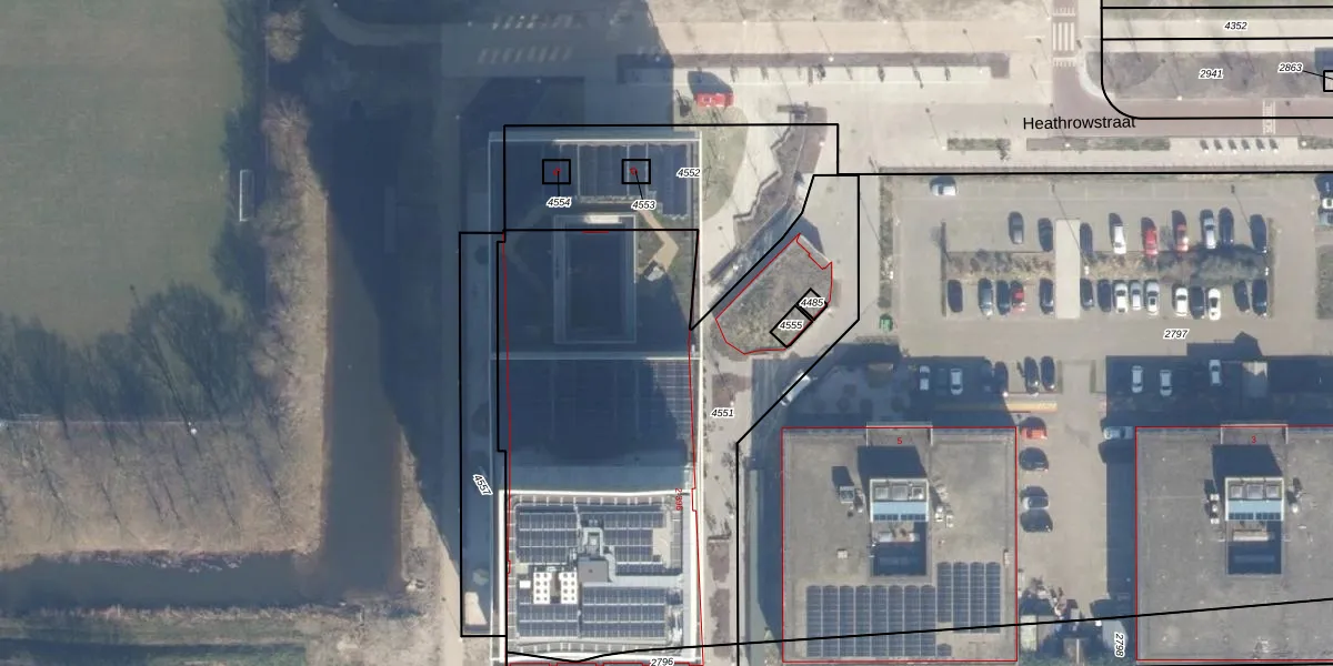 Het perceel waarop Heathrowstraat 262 staat heeft een oppervlakte van 2588 m². Dit is een zeer groot perceel. De perceeloppervlakte wordt geregistreerd door het Kadaster. Gedetailleerde informatie over de maten van dit perceel kunt u vinden in het rapport Kadastrale kaart met maatvoering van Heathrowstraat 262.