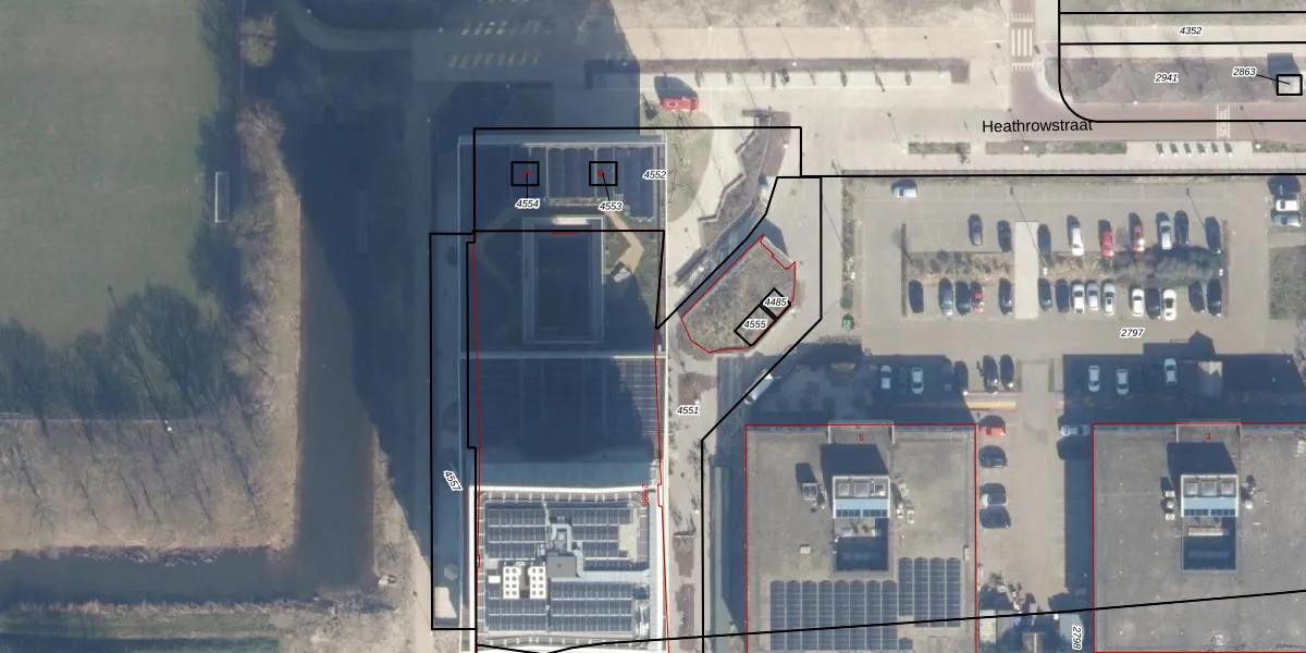 Het perceel waarop Heathrowstraat 264 staat heeft een oppervlakte van 2588 m². Dit is een zeer groot perceel. De perceeloppervlakte wordt geregistreerd door het Kadaster. Gedetailleerde informatie over de maten van dit perceel kunt u vinden in het rapport Kadastrale kaart met maatvoering van Heathrowstraat 264.
