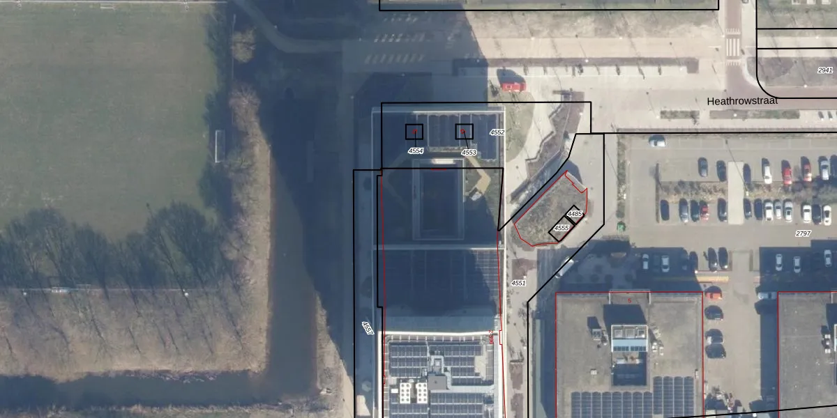 Het perceel waarop Heathrowstraat 284 staat heeft een oppervlakte van 2588 m². Dit is een zeer groot perceel. De perceeloppervlakte wordt geregistreerd door het Kadaster. Gedetailleerde informatie over de maten van dit perceel kunt u vinden in het rapport Kadastrale kaart met maatvoering van Heathrowstraat 284.