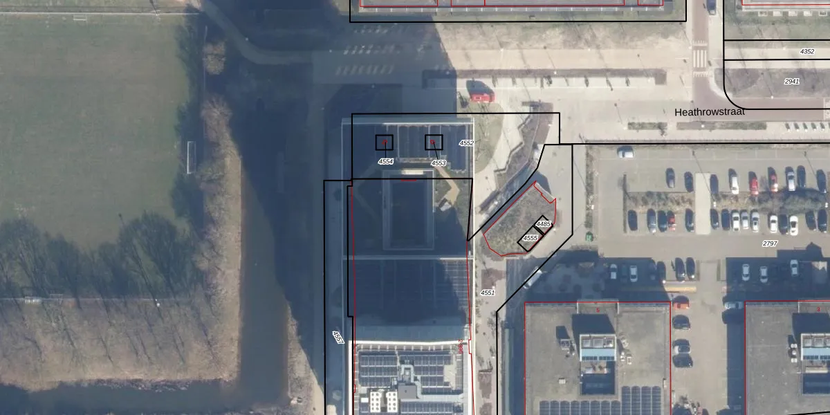 Het perceel waarop Heathrowstraat 300 staat heeft een oppervlakte van 2588 m². Dit is een zeer groot perceel. De perceeloppervlakte wordt geregistreerd door het Kadaster. Gedetailleerde informatie over de maten van dit perceel kunt u vinden in het rapport Kadastrale kaart met maatvoering van Heathrowstraat 300.