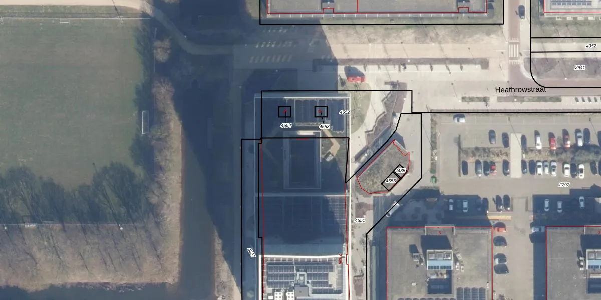 Het perceel waarop Heathrowstraat 314 staat heeft een oppervlakte van 2588 m². Dit is een zeer groot perceel. De perceeloppervlakte wordt geregistreerd door het Kadaster. Gedetailleerde informatie over de maten van dit perceel kunt u vinden in het rapport Kadastrale kaart met maatvoering van Heathrowstraat 314.
