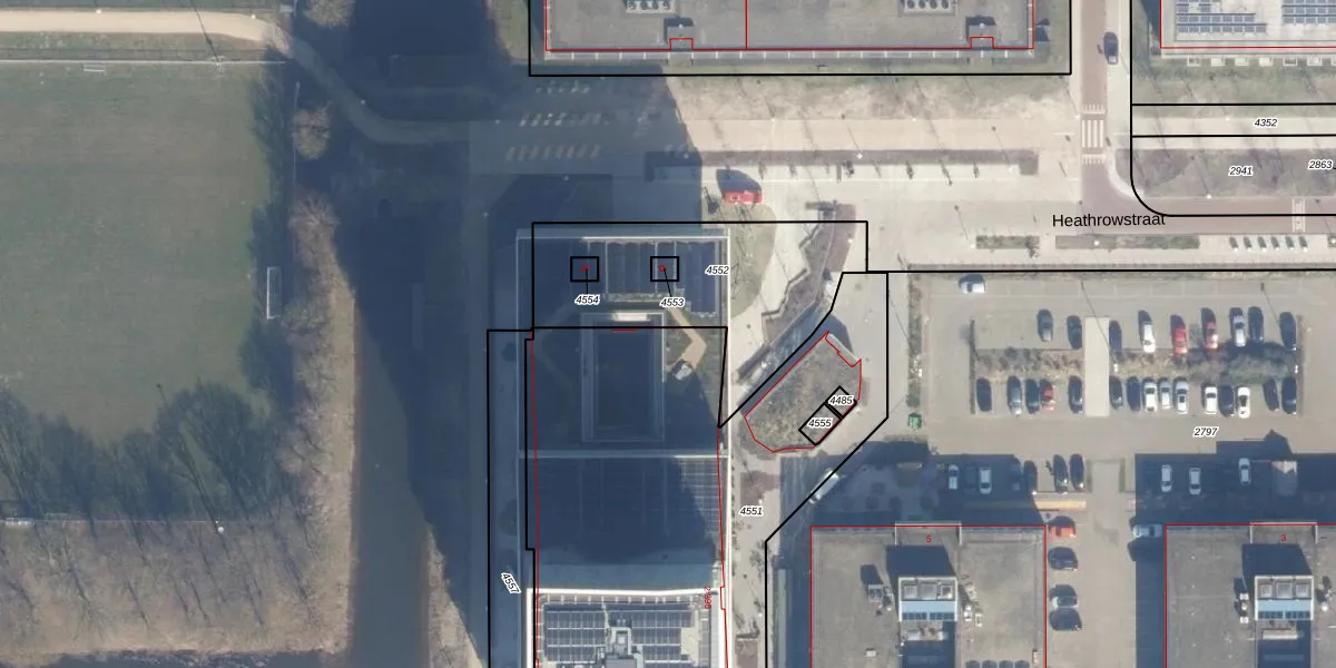 Het perceel waarop Heathrowstraat 332 staat heeft een oppervlakte van 2588 m². Dit is een zeer groot perceel. De perceeloppervlakte wordt geregistreerd door het Kadaster. Gedetailleerde informatie over de maten van dit perceel kunt u vinden in het rapport Kadastrale kaart met maatvoering van Heathrowstraat 332.