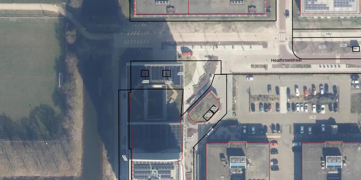 Het perceel waarop Heathrowstraat 336 staat heeft een oppervlakte van 2588 m². Dit is een zeer groot perceel. De perceeloppervlakte wordt geregistreerd door het Kadaster. Gedetailleerde informatie over de maten van dit perceel kunt u vinden in het rapport Kadastrale kaart met maatvoering van Heathrowstraat 336.