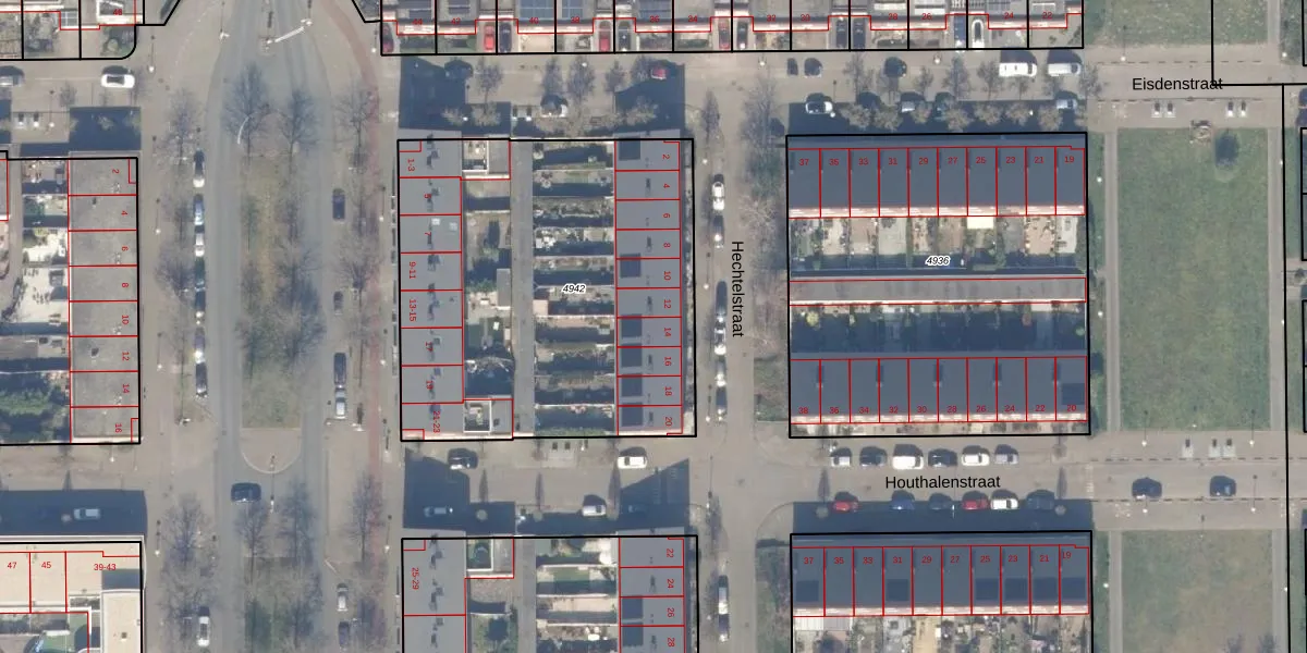 Hechtelstraat 14 is gelegen op kadastraal perceel STN02E4942. Deze kadastrale aanduiding is uniek en wordt gebruikt door het Kadaster om eigendomsrechten en andere zakelijke rechten vast te leggen. Het perceel maakt onderdeel uit van de kadastrale gemeente Sloten Noord-Holland.