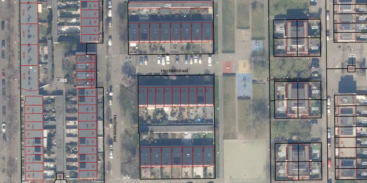 Hechtelstraat 23 is gelegen op kadastraal perceel STN02E4938. Deze kadastrale aanduiding is uniek en wordt gebruikt door het Kadaster om eigendomsrechten en andere zakelijke rechten vast te leggen. Het perceel maakt onderdeel uit van de kadastrale gemeente Sloten Noord-Holland.