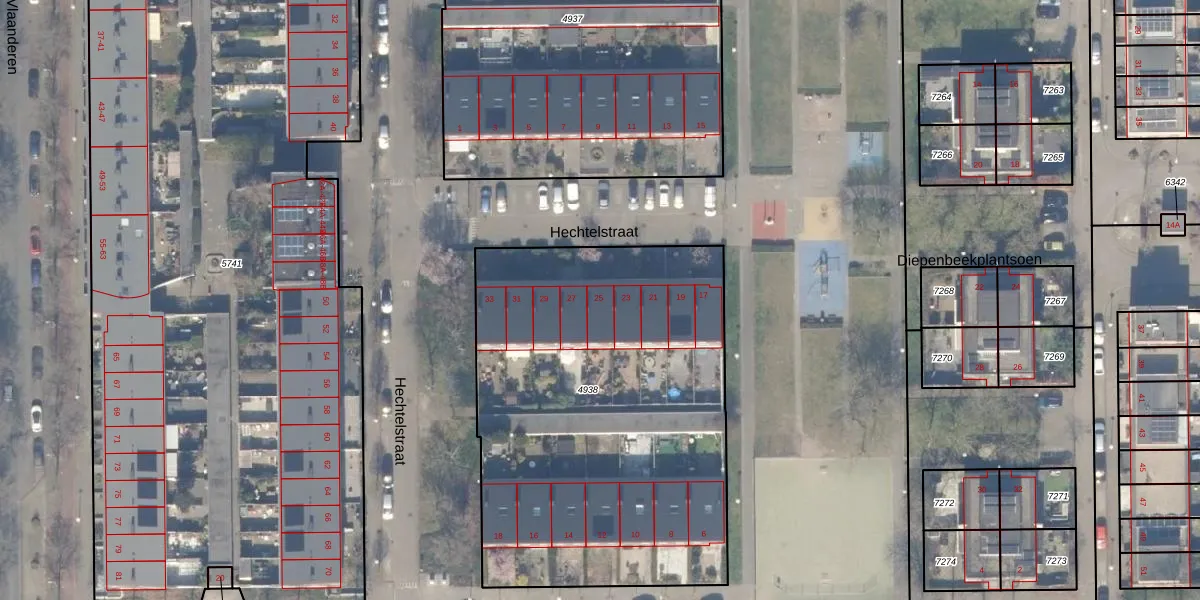 Het perceel waarop Hechtelstraat 25 staat heeft een oppervlakte van 2315 m². Dit is een zeer groot perceel. De perceeloppervlakte wordt geregistreerd door het Kadaster. Gedetailleerde informatie over de maten van dit perceel kunt u vinden in het rapport Kadastrale kaart met maatvoering van Hechtelstraat 25.