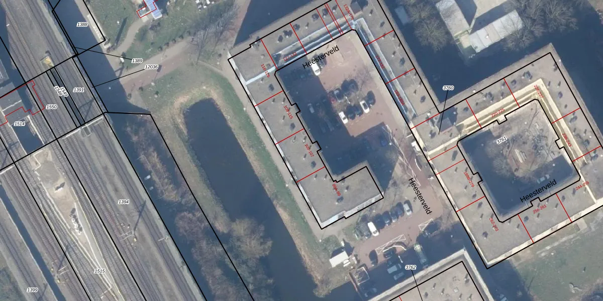 Het perceel waarop Heesterveld 103 staat heeft een oppervlakte van 3669 m². Dit is een zeer groot perceel. De perceeloppervlakte wordt geregistreerd door het Kadaster. Gedetailleerde informatie over de maten van dit perceel kunt u vinden in het rapport Kadastrale kaart met maatvoering van Heesterveld 103.