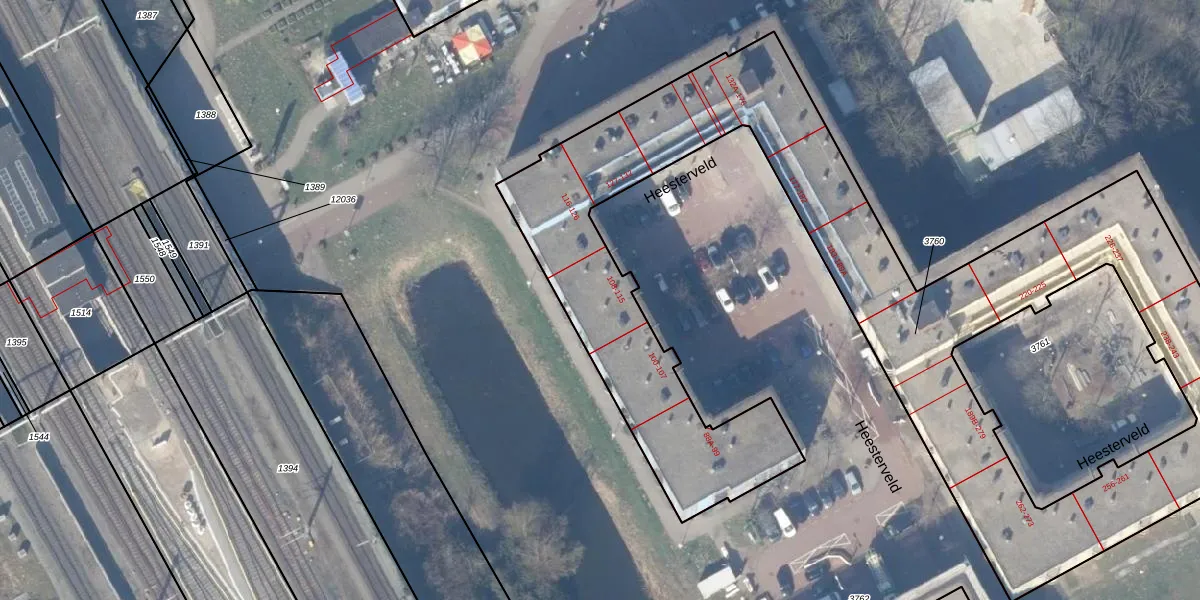 Het perceel waarop Heesterveld 111 staat heeft een oppervlakte van 3669 m². Dit is een zeer groot perceel. De perceeloppervlakte wordt geregistreerd door het Kadaster. Gedetailleerde informatie over de maten van dit perceel kunt u vinden in het rapport Kadastrale kaart met maatvoering van Heesterveld 111.