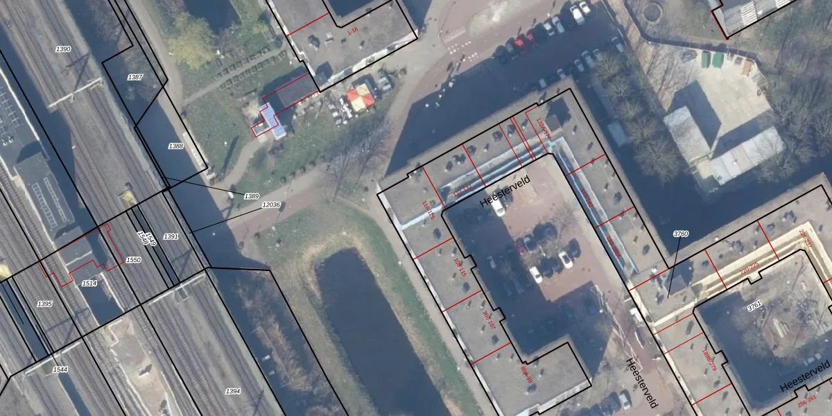 Het perceel waarop Heesterveld 122 staat heeft een oppervlakte van 3669 m². Dit is een zeer groot perceel. De perceeloppervlakte wordt geregistreerd door het Kadaster. Gedetailleerde informatie over de maten van dit perceel kunt u vinden in het rapport Kadastrale kaart met maatvoering van Heesterveld 122.