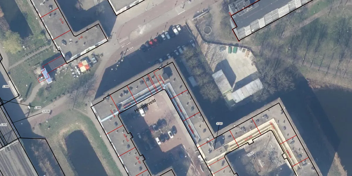 Het perceel waarop Heesterveld 154 staat heeft een oppervlakte van 3669 m². Dit is een zeer groot perceel. De perceeloppervlakte wordt geregistreerd door het Kadaster. Gedetailleerde informatie over de maten van dit perceel kunt u vinden in het rapport Kadastrale kaart met maatvoering van Heesterveld 154.