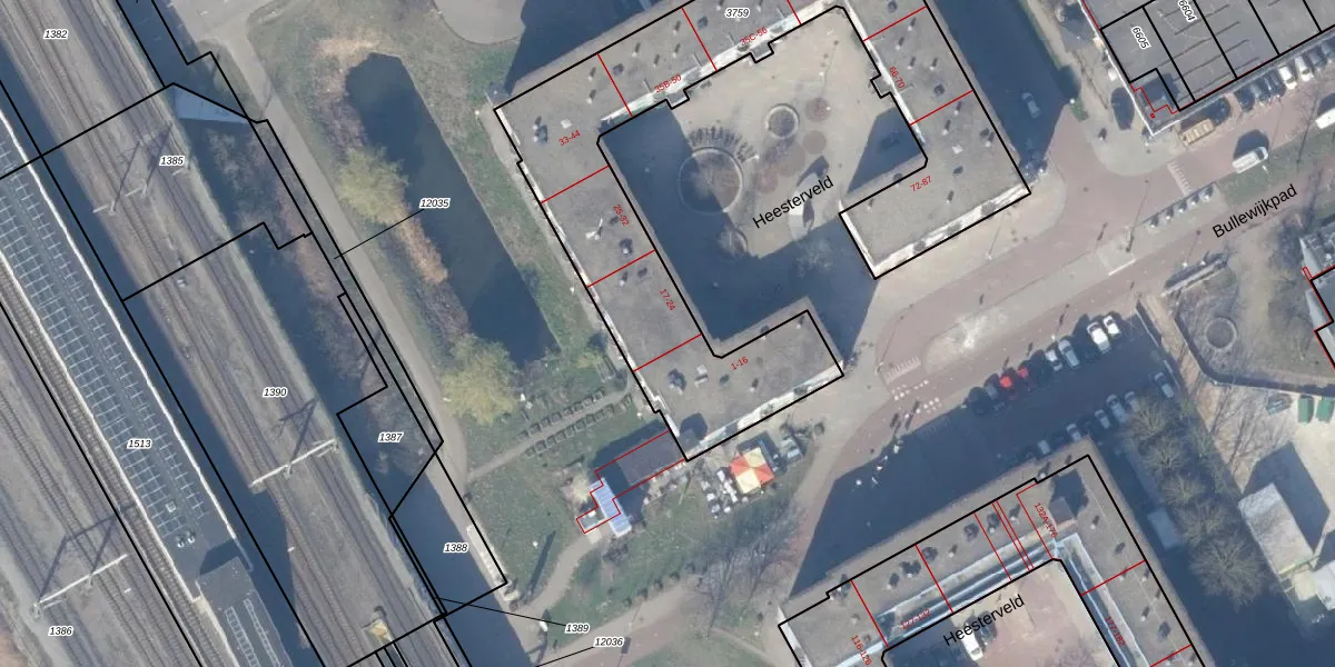Het perceel waarop Heesterveld 17 staat heeft een oppervlakte van 2085 m². Dit is een zeer groot perceel. De perceeloppervlakte wordt geregistreerd door het Kadaster. Gedetailleerde informatie over de maten van dit perceel kunt u vinden in het rapport Kadastrale kaart met maatvoering van Heesterveld 17.