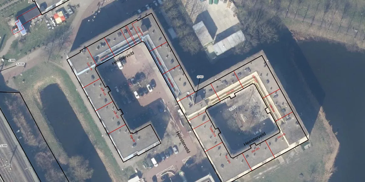 Het perceel waarop Heesterveld 187 staat heeft een oppervlakte van 3669 m². Dit is een zeer groot perceel. De perceeloppervlakte wordt geregistreerd door het Kadaster. Gedetailleerde informatie over de maten van dit perceel kunt u vinden in het rapport Kadastrale kaart met maatvoering van Heesterveld 187.
