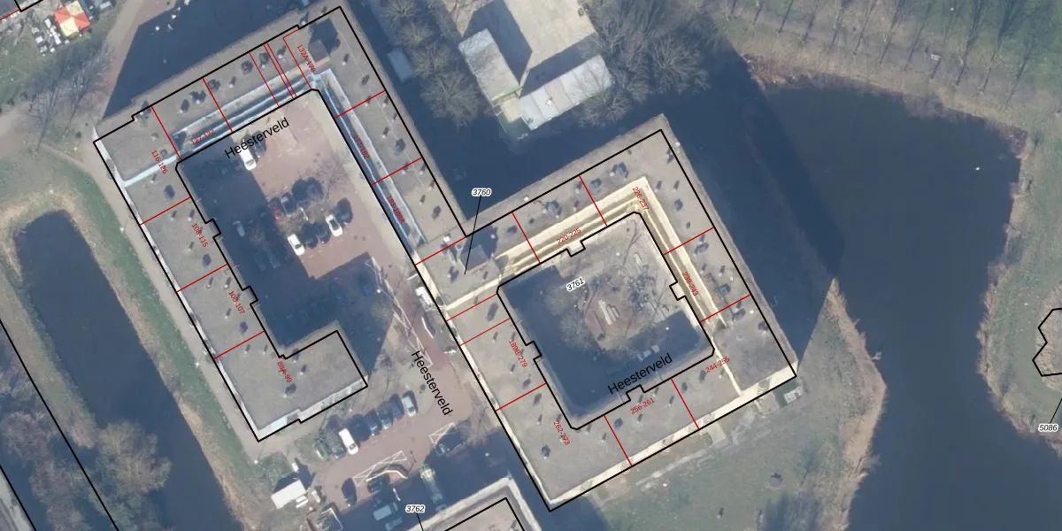 Het perceel waarop Heesterveld 196 staat heeft een oppervlakte van 3669 m². Dit is een zeer groot perceel. De perceeloppervlakte wordt geregistreerd door het Kadaster. Gedetailleerde informatie over de maten van dit perceel kunt u vinden in het rapport Kadastrale kaart met maatvoering van Heesterveld 196.