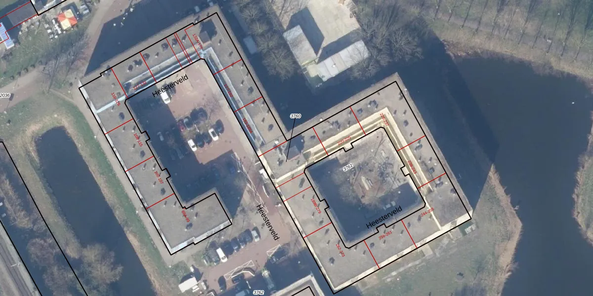 Het perceel waarop Heesterveld 198 staat heeft een oppervlakte van 3669 m². Dit is een zeer groot perceel. De perceeloppervlakte wordt geregistreerd door het Kadaster. Gedetailleerde informatie over de maten van dit perceel kunt u vinden in het rapport Kadastrale kaart met maatvoering van Heesterveld 198.