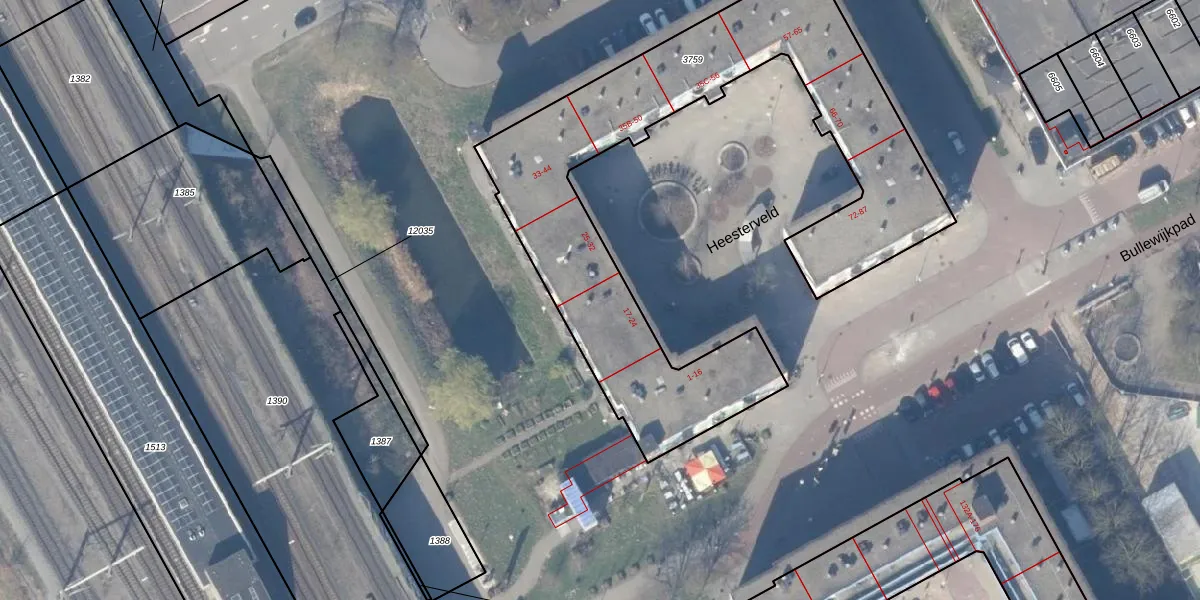 Het perceel waarop Heesterveld 22 staat heeft een oppervlakte van 2085 m². Dit is een zeer groot perceel. De perceeloppervlakte wordt geregistreerd door het Kadaster. Gedetailleerde informatie over de maten van dit perceel kunt u vinden in het rapport Kadastrale kaart met maatvoering van Heesterveld 22.