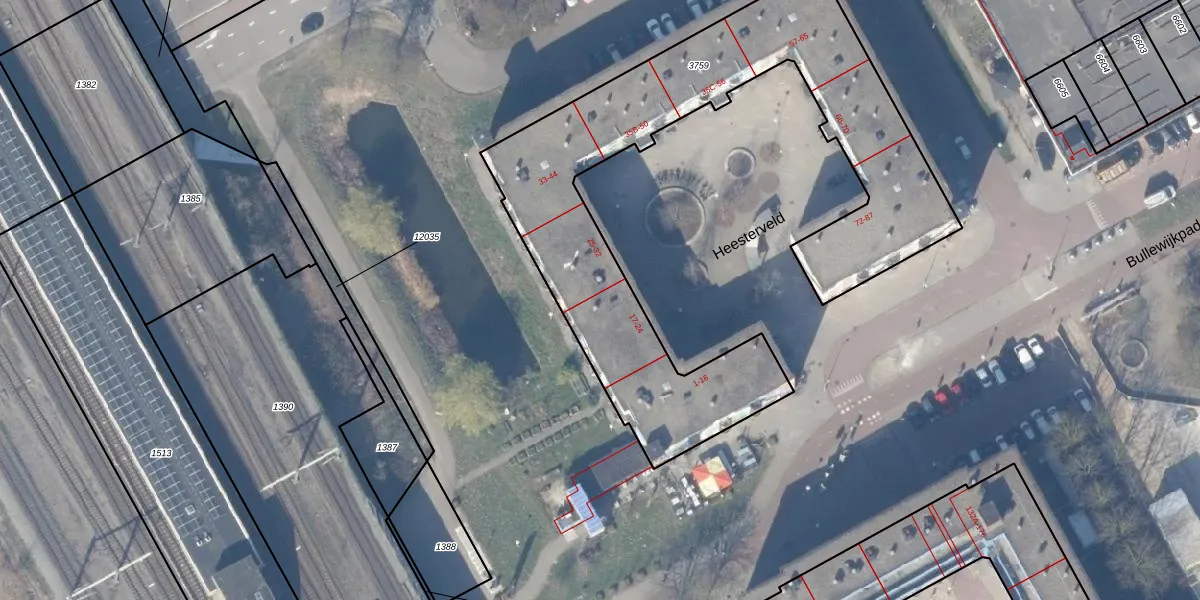 Het perceel waarop Heesterveld 23 staat heeft een oppervlakte van 2085 m². Dit is een zeer groot perceel. De perceeloppervlakte wordt geregistreerd door het Kadaster. Gedetailleerde informatie over de maten van dit perceel kunt u vinden in het rapport Kadastrale kaart met maatvoering van Heesterveld 23.