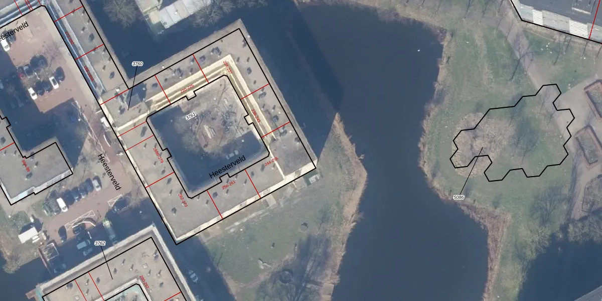 Het perceel waarop Heesterveld 245 staat heeft een oppervlakte van 3669 m². Dit is een zeer groot perceel. De perceeloppervlakte wordt geregistreerd door het Kadaster. Gedetailleerde informatie over de maten van dit perceel kunt u vinden in het rapport Kadastrale kaart met maatvoering van Heesterveld 245.
